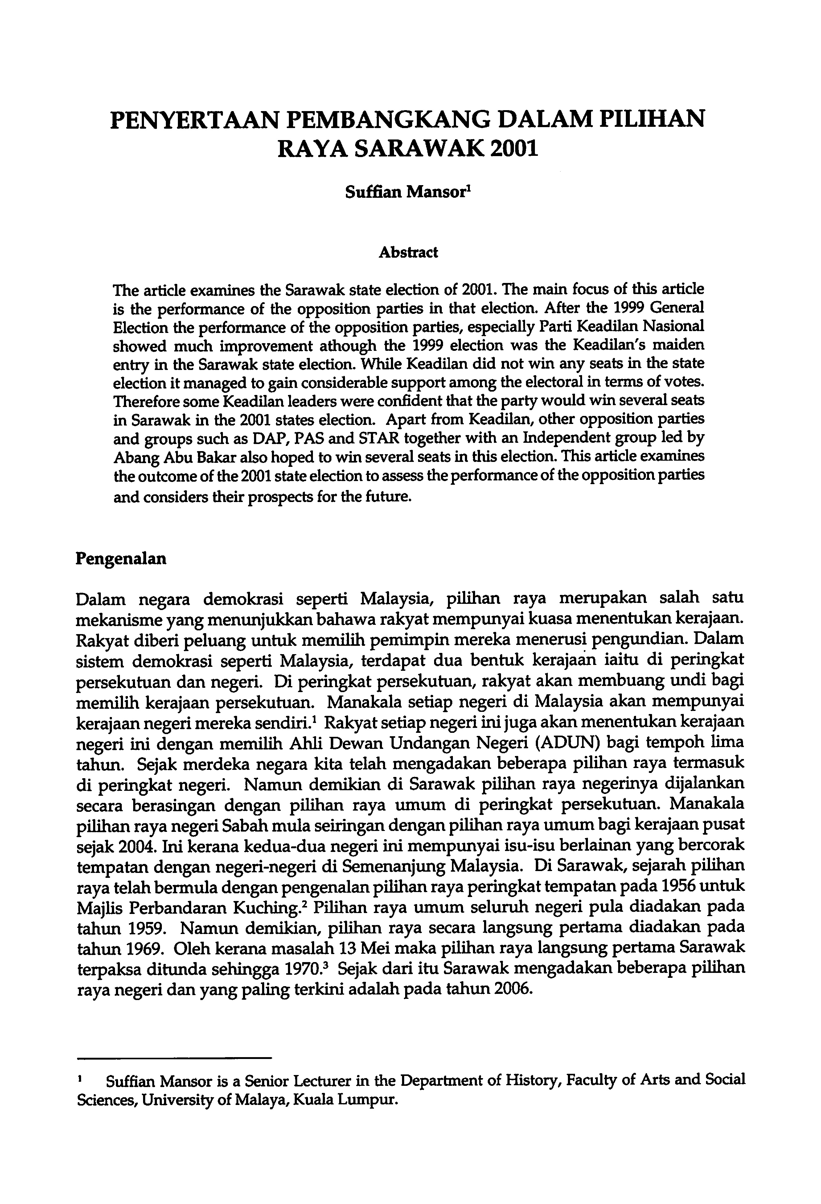• PENYERTAAN PEMBANGKANG DALAM PILIHAN RAYA SARAWAK 2001